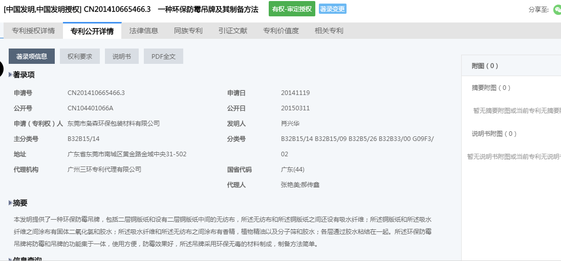 發明專利 首頁 > 榮譽資質 > 發明專利 了解更多專利信息:https://www.baiten.cn/patent/detail/4492da32cd2ab2dfa6fc8f3ece657c3efc8317abc277df81?sc=&fq=&type=&sort=&sortField=&q=東莞市梟森&rows=10#1/CN201410665466.3/detail/abst