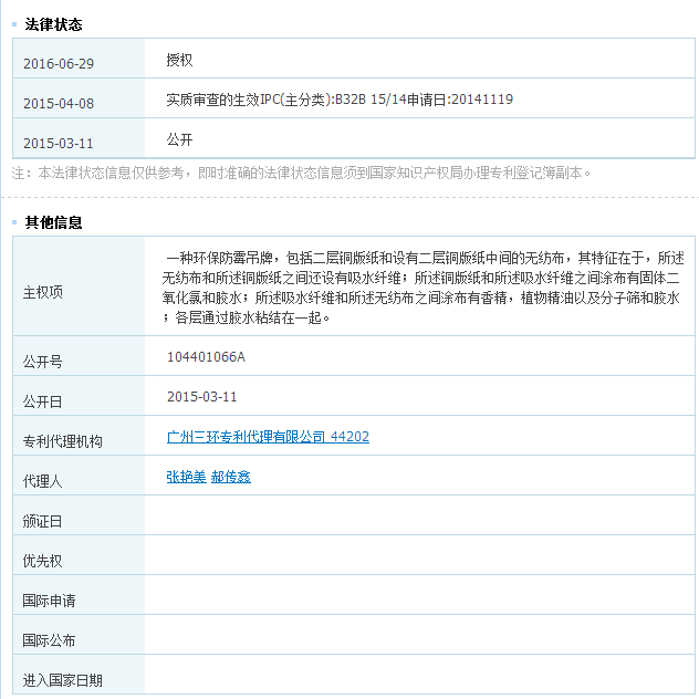 本發(fā)明提供了一種環(huán)保防霉吊牌,包括二層銅版紙和設(shè)有二層銅版紙中間的無紡布,所述無紡布和所述銅版紙之間還設(shè)有吸水纖維;所述銅版紙和所述吸水纖維之間涂布有固體二氧化氯和膠水;所述吸水纖維和所述無紡布之間涂布有香精,植物精油以及分子篩和膠水;各層通過膠水粘結(jié)在一起。所述環(huán)保防霉吊牌將防霉和吊牌的功能集于一體,使用方便,防霉效果好,所述吊牌采用環(huán)保無毒的材料制成,制備方法簡單。